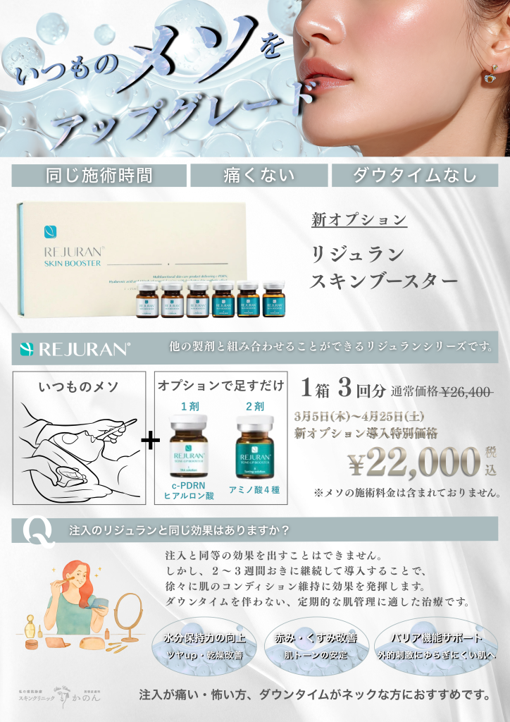 2026年3月5日(木)より、エレクトロポレーション施術(メソアクティス及びメソナJ)に新しい導入オプションとして、リジュラン スキンブースターが加わります。
